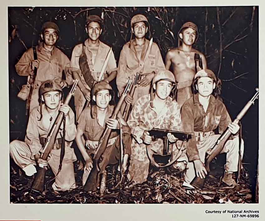 “Anaai (Enemy) naatsosi (Japanese) beeldooh alhaa dildoni (machine gun) nishnaajigo nahdikadgo (on your right flank). Diiltaah (Destroy).