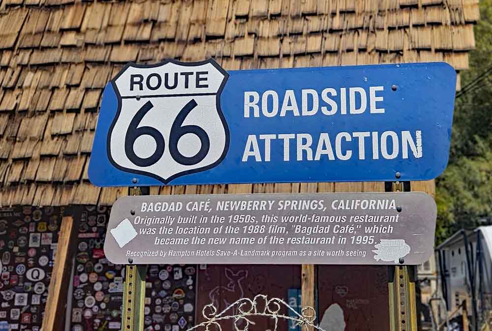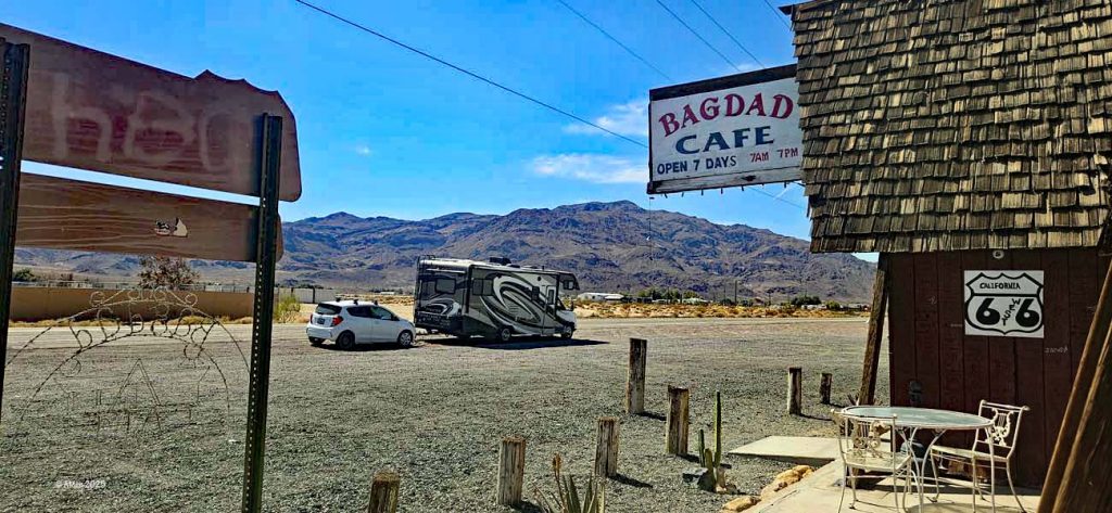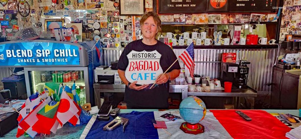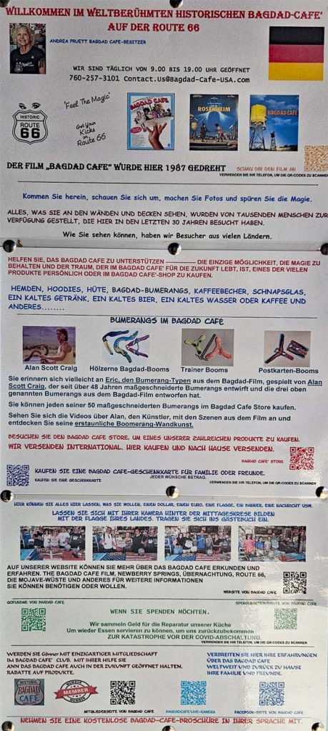 Sie und ein nicht viel jüngerer Mann gaben sich viel Mühe, machten ein Bild von mir mit einem „Historic Bagdad Cafe“ Schild.