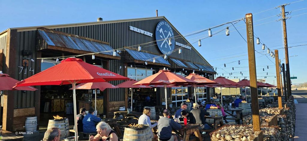 Sehr gut saßen wir im Außenbereich der Grand Canyon Brewery in Page