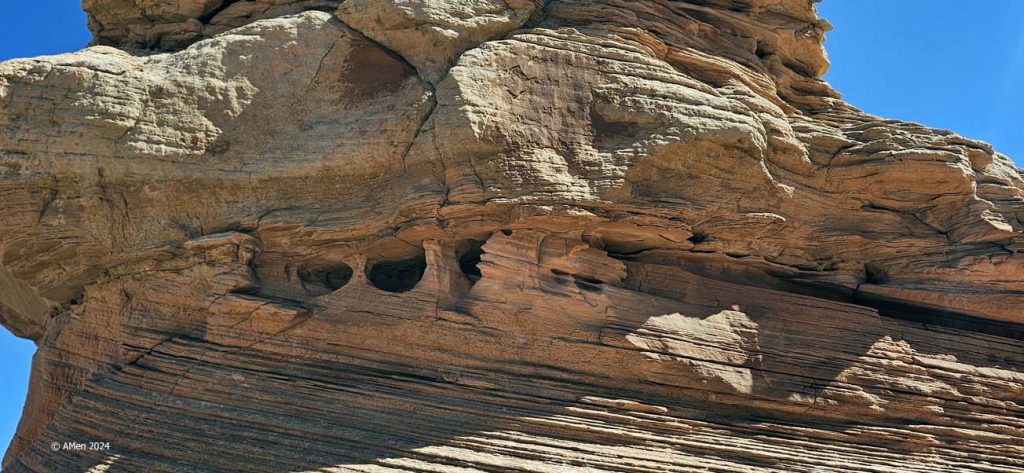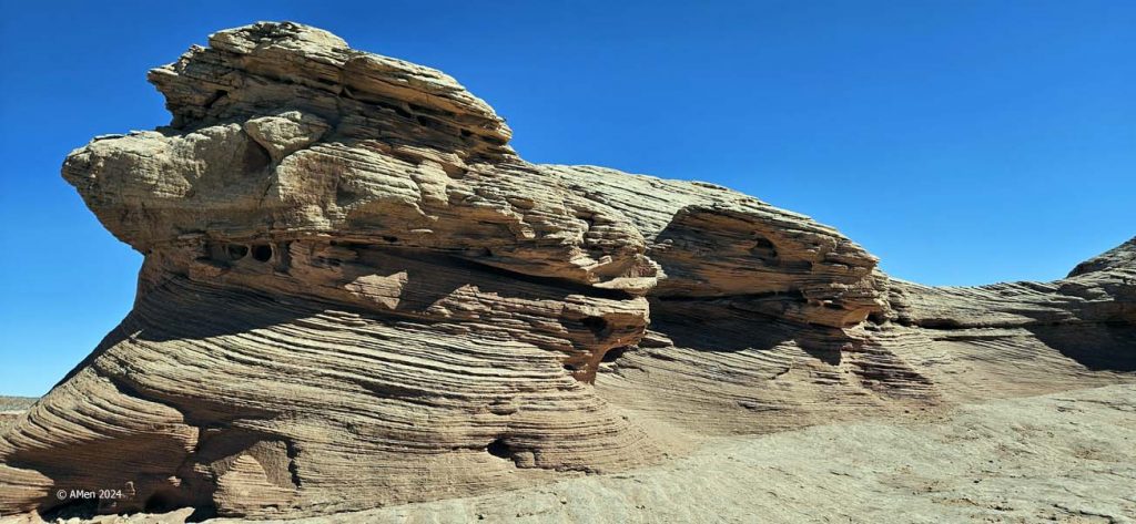 Die wellenartigen Muster erinnern an die Bewegung von Wasser und verleihen den Felsen ein dynamisches und lebendiges Aussehen.