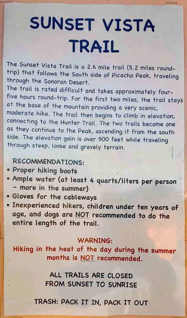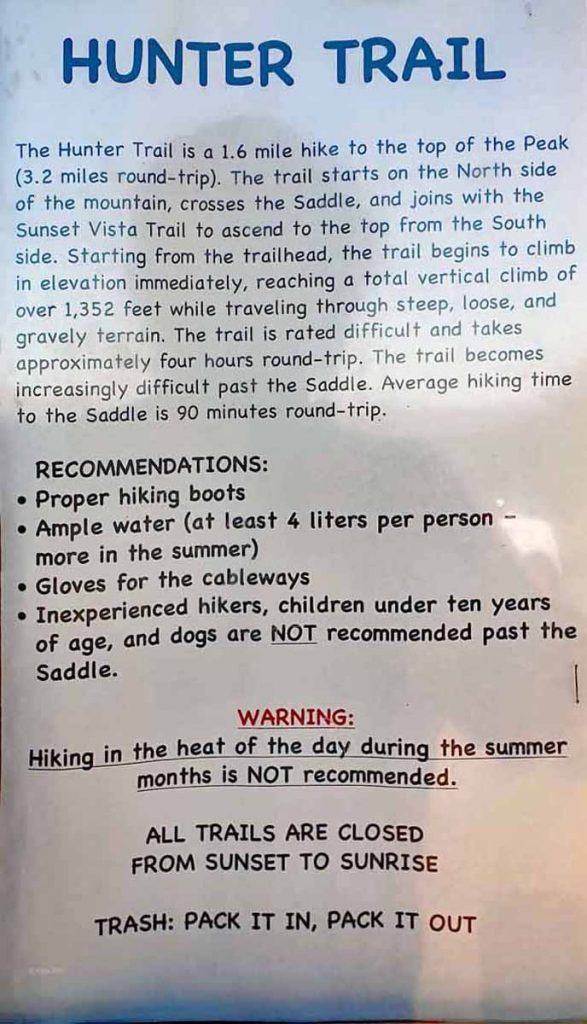 Ein anderer Weg ist der 3,1 Meilen lange Sunset Vista Trail, der die ersten zwei Meilen sehr moderat verläuft, aber dann schwer wird und sich im letzten Stück mit dem Hunter Trail vereinigt.