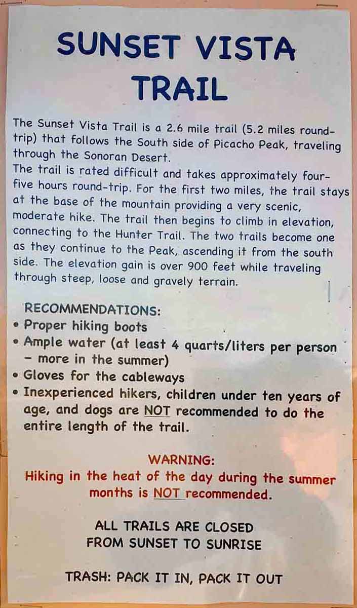 Ein anderer Weg ist der 3,1 Meilen lange Sunset Vista Trail, der die ersten zwei Meilen sehr moderat verläuft, aber dann schwer wird und sich im letzten Stück mit dem Hunter Trail vereinigt.