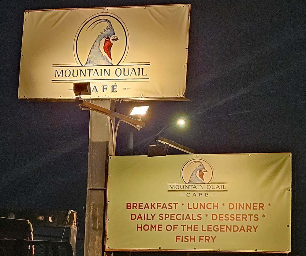 https://wefind.bizsite.link/mountain-quail-cafeEmpfohlen wird das Mountain Quail Cafe, dahin haben wir es aber nicht geschafft.