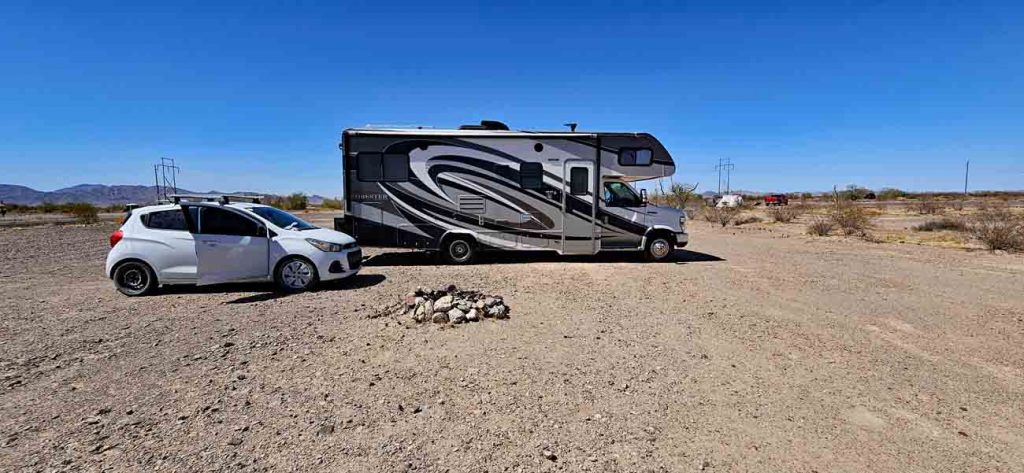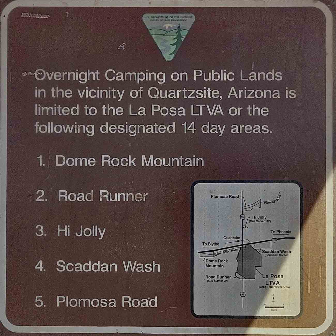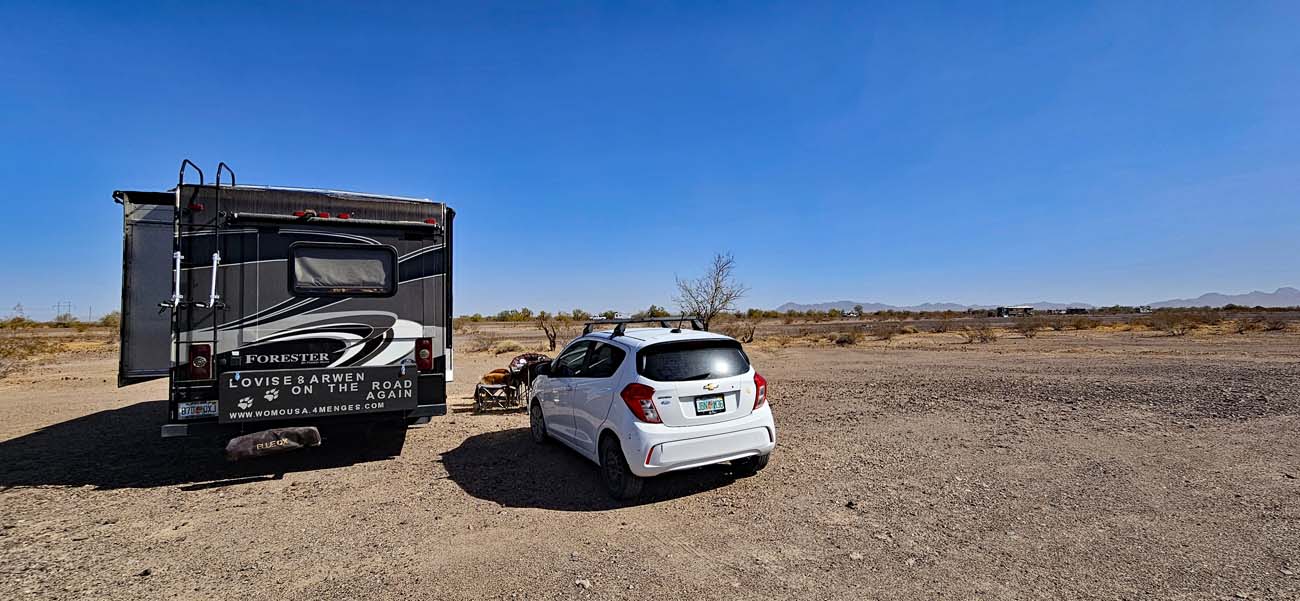 Viele unserer Bekannten erzählten, dass sie bevorzugt nördlich von Quartzsite an der Plomosa Road standen, da es nicht so voll sei wie auf den anderen Stellen.