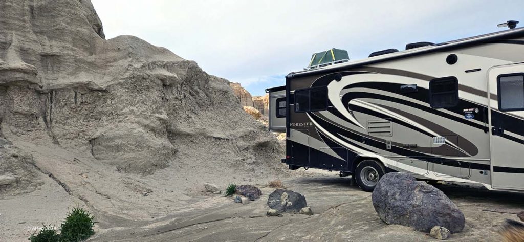 Der Campingplatz verfügt über 50 einfache Stellplätze, Trinkwasser, Toiletten, Feuerstellen und Tische, ohne Strom. Die Sites liegen zum großen Teil direkt an den Felsen. Sie lassen sich nicht reservieren, es gilt First Come First Serve. Die Campinggebühr beträgt 25 $ pro Nacht und Stellplatz, die Fahrzeuge dürfen maximal 30ft lang sein. Wir meldeten uns im Visitorcenter, sollten uns zunächst einen Platz suchen und uns dann registrieren.