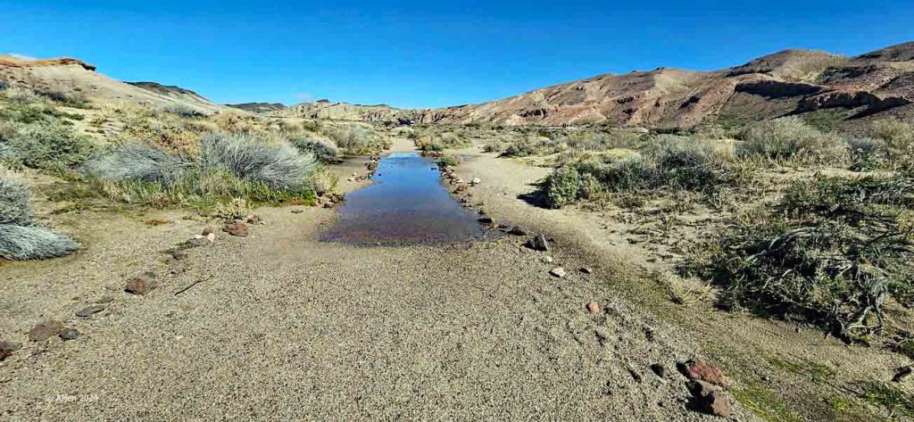 Die heutige Wüste war vor 10000 Jahren, als die Sierra Gletscher schmolzen, eine Ebene mit vielen Seen, wo Säbelzahn-Tiger, Kamele, wilde Pferde und sogar Rhinozerosse lebten. Die verschiedenen Pflanzen, die man entlang des Pfades sieht, werden benannt (z.B. Joshua Tree, Creosot und mehr), auch deren spezielle Anpassungen andas Wüstenumfeld.