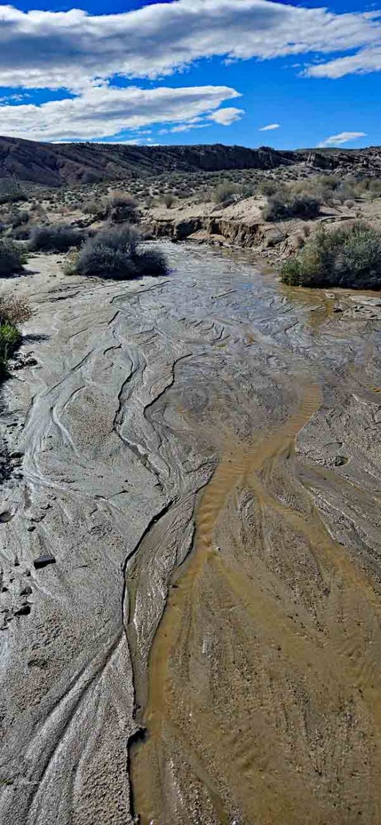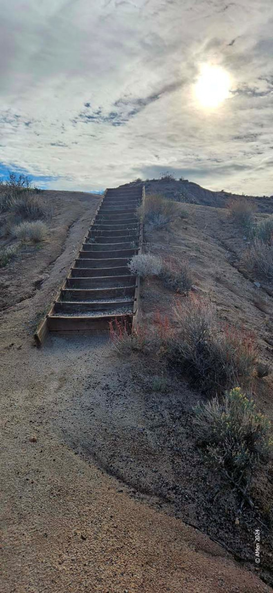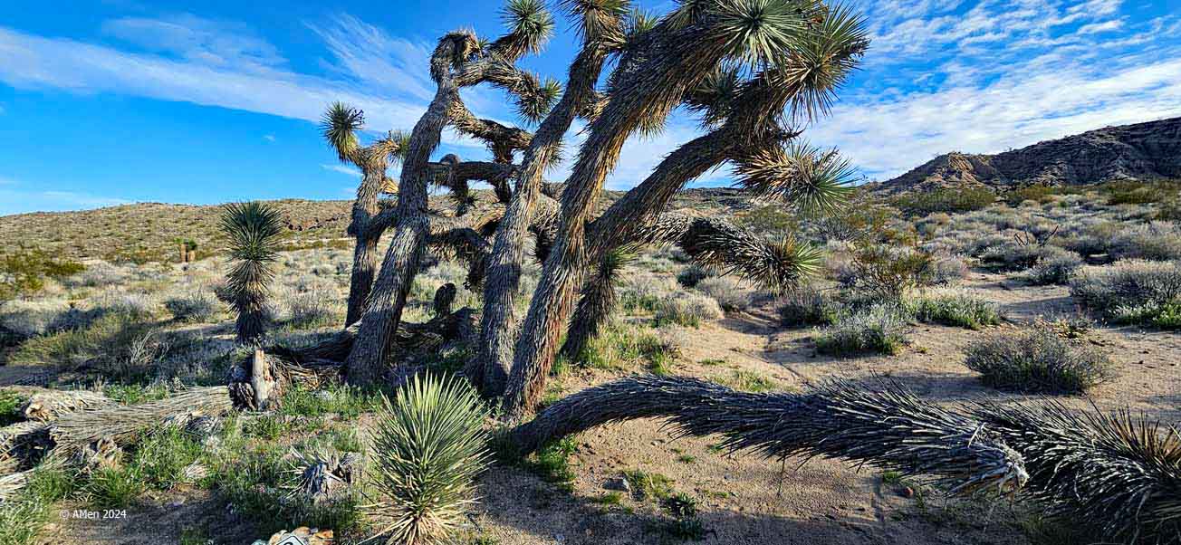 Die heutige Wüste war vor 10000 Jahren, als die Sierra Gletscher schmolzen, eine Ebene mit vielen Seen, wo Säbelzahn-Tiger, Kamele, wilde Pferde und sogar Rhinozerosse lebten. Die verschiedenen Pflanzen, die man entlang des Pfades sieht, werden benannt (z.B. Joshua Tree, Creosot und mehr), auch deren spezielle Anpassungen andas Wüstenumfeld.