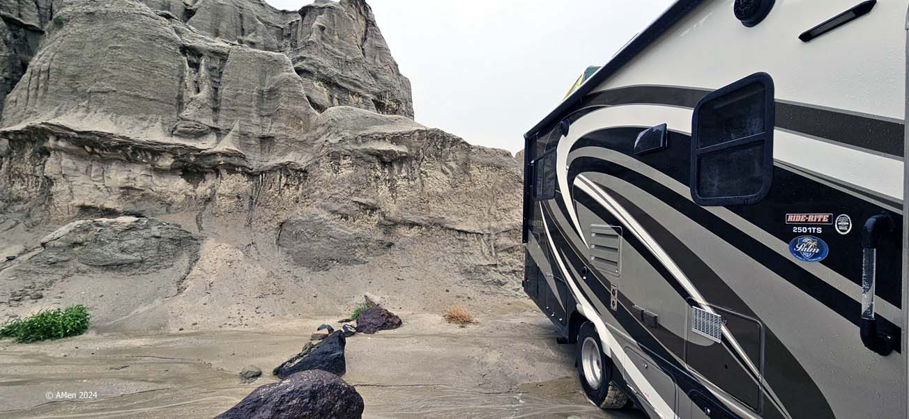 Der Campingplatz verfügt über 50 einfache Stellplätze, Trinkwasser, Toiletten, Feuerstellen und Tische, ohne Strom. Die Sites liegen zum großen Teil direkt an den Felsen. Sie lassen sich nicht reservieren, es gilt First Come First Serve. Die Campinggebühr beträgt 25 $ pro Nacht und Stellplatz, die Fahrzeuge dürfen maximal 30ft lang sein. Wir meldeten uns im Visitorcenter, sollten uns zunächst einen Platz suchen und uns dann registrieren.
