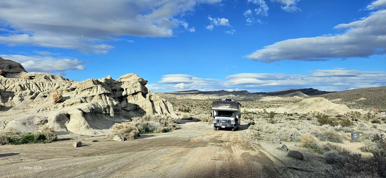 Da wir wegen einer neuen Wasserpumpe in California City warten mussten, fuhren wir den Platz zwei Tage später noch einmal an, diesmal bei deutlich besserem Wetter.