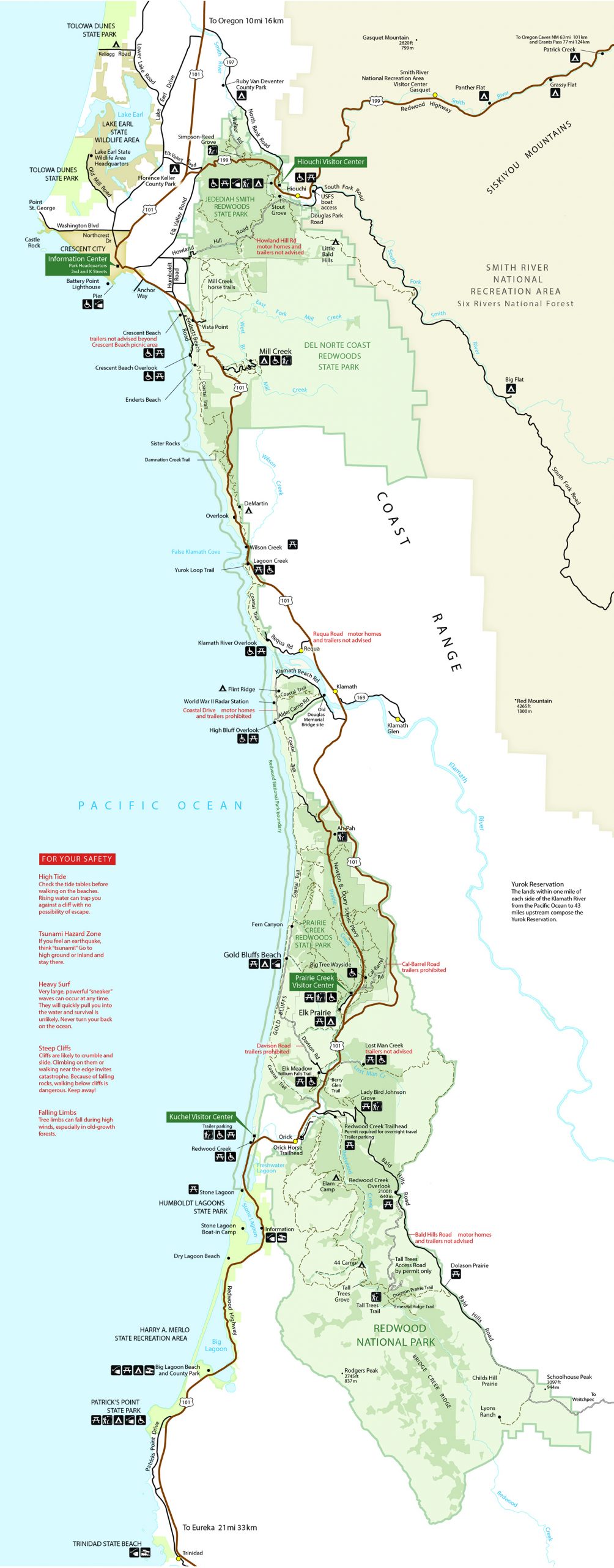 Von Süden kommend passiert man das Thomas H. Kuchel Visitor Center, eines der fünf offiziellen Visitor Centers im Gebiet der Redwood National und Sate Park.