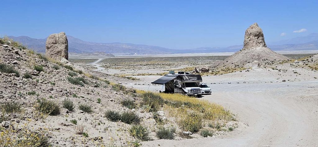 Die 10 Kilometer lange Gravelstrecke zu den Trona Pinnacles zieht sich. Trotz dem derzeitigen guten Zustand war sie lang – sehr lang. Wenn es regnet, ist die Straße unbefahrbar und kann auch mal gesperrt sein – aber wenn man erst mal da ist, ist es ein faszinierender Aufenthalt inmitten einer unwirklichen Umgebung.