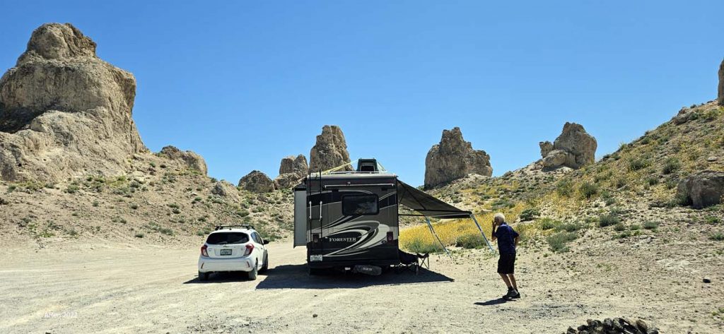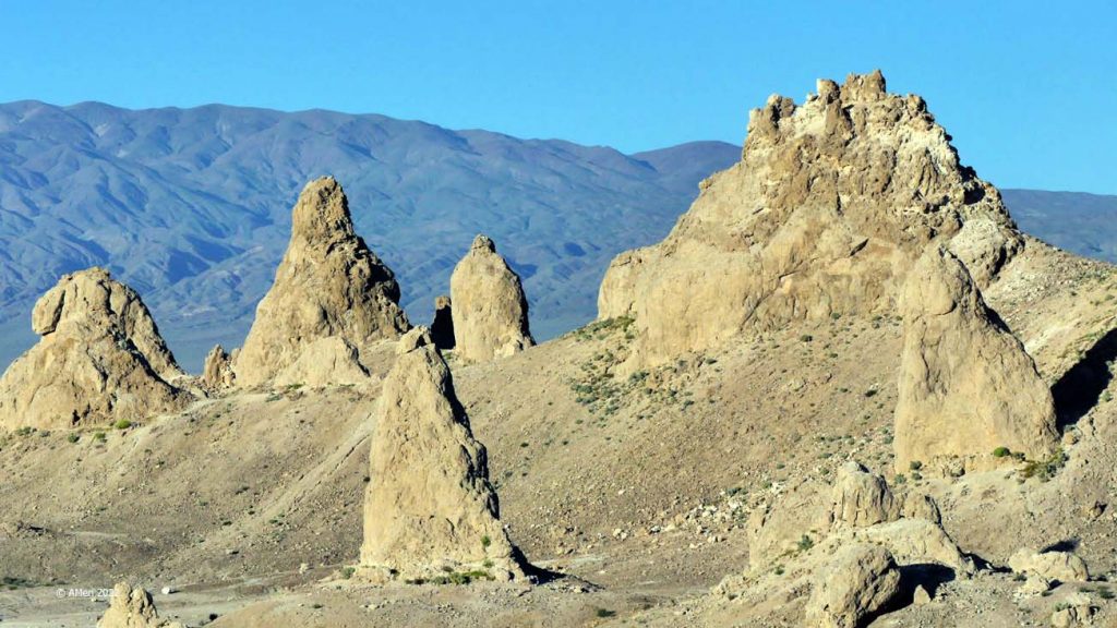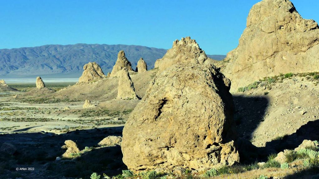 Einer der beeindruckendsten Plätze, die wir bisher besucht haben, sind zweifelsohne die Trona Pinnacles, – ein Ort, der mit seinen bizarren Kalkformationen wirkt, als sei er eher auf einem anderen Planeten als in Kalifornien zu finden.