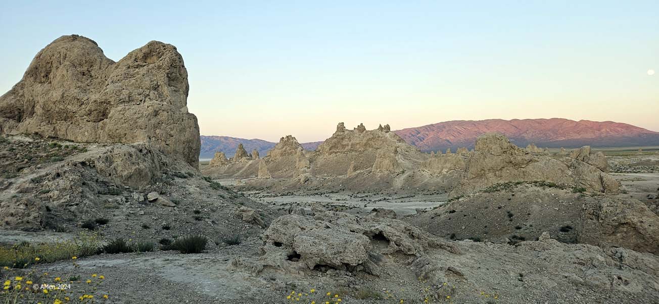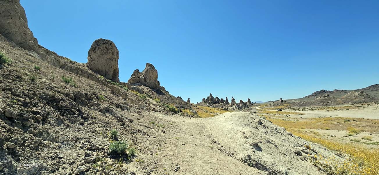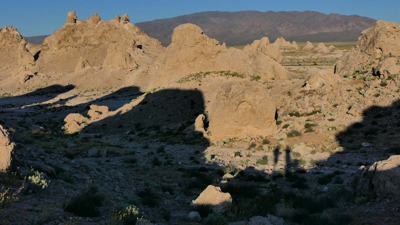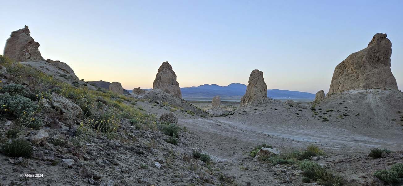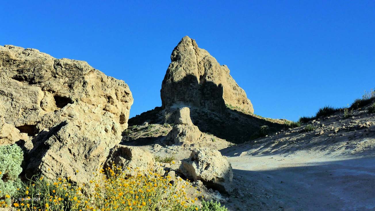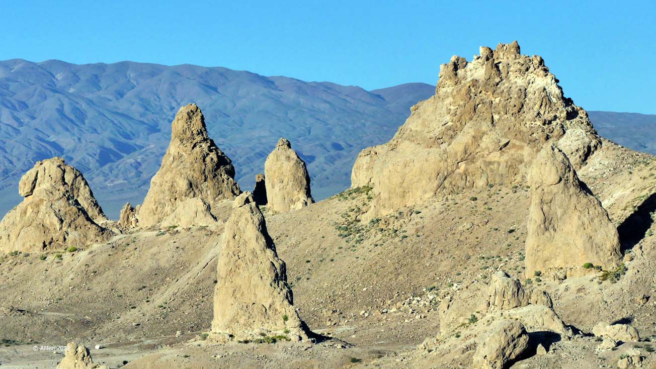 Diese Tuffspitzen sind poröses Gestein, das sich als Ablagerung bildet, wenn Quellen mit anderen Wasserkörpern interagieren. Die Pinnacles variieren in Größe und Form von kurz und gedrungen bis hoch und dünn und bestehen hauptsächlich aus Kalziumkarbonat (Tuff). Sie sitzen jetzt isoliert und zerfallen langsam am südlichen Ende des Tals, umgeben von vielen Quadratmeilen flachem, getrocknetem Schlamm und mit kargen Bergketten auf beiden Seiten1.