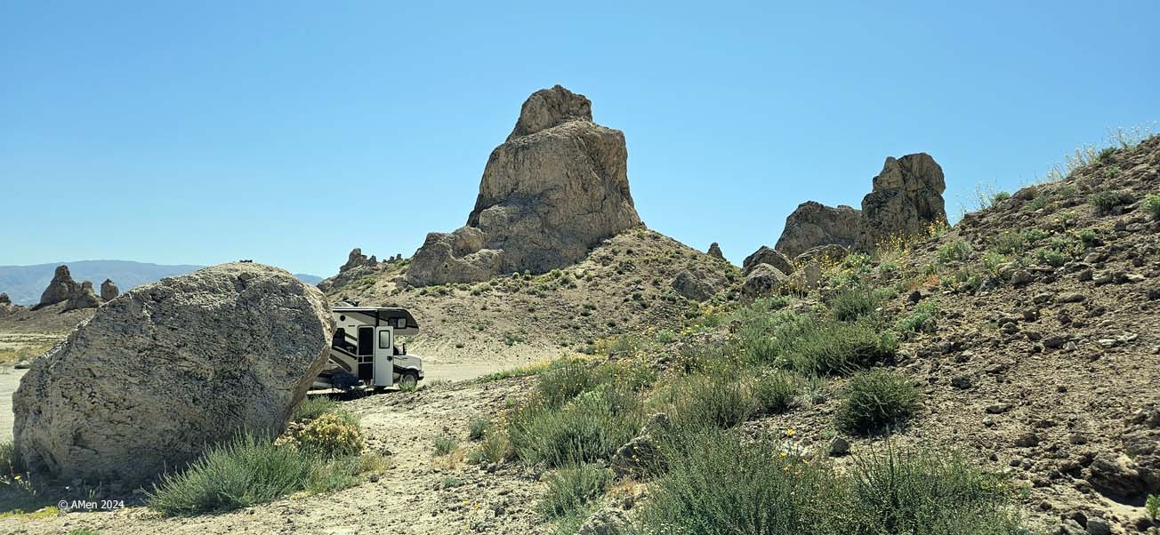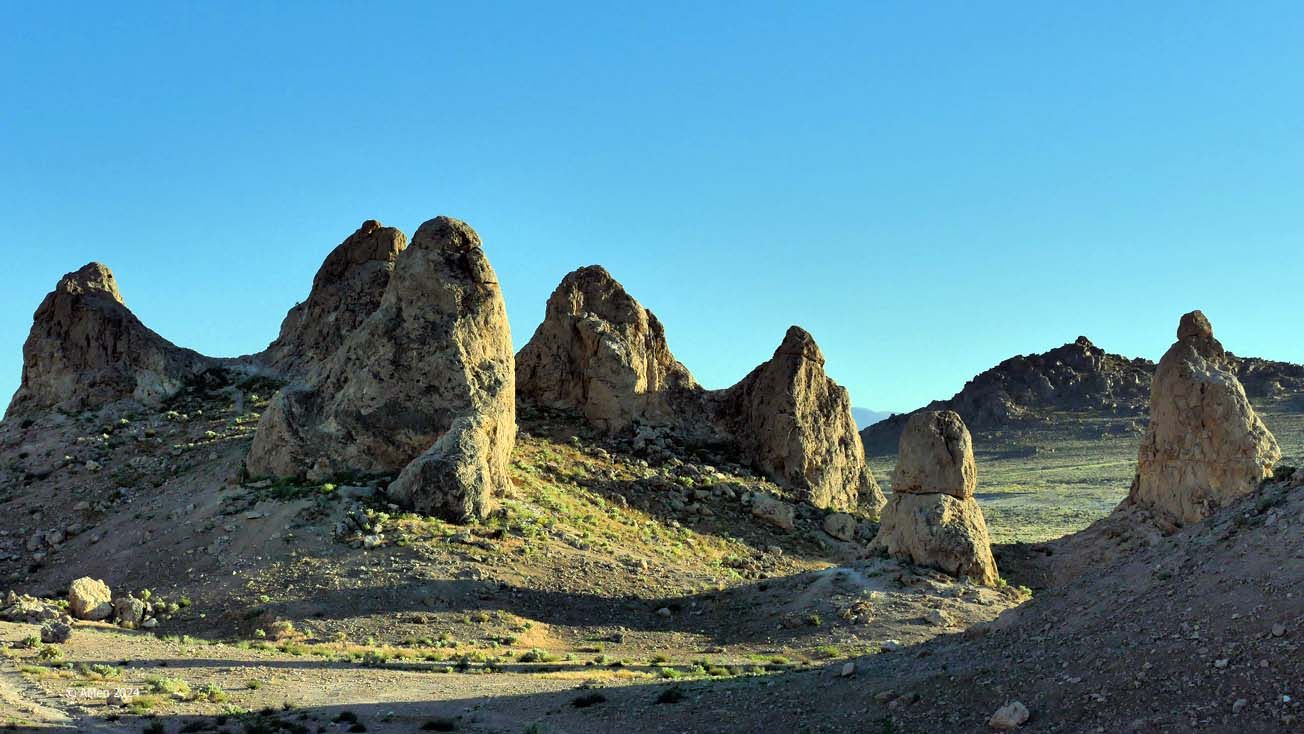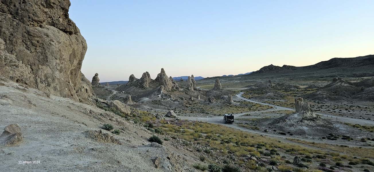 Einer der beeindruckendsten Plätze, die wir bisher besucht haben, sind zweifelsohne die Trona Pinnacles, – ein Ort, der mit seinen bizarren Kalkformationen wirkt, als sei er eher auf einem anderen Planeten als in Kalifornien zu finden.