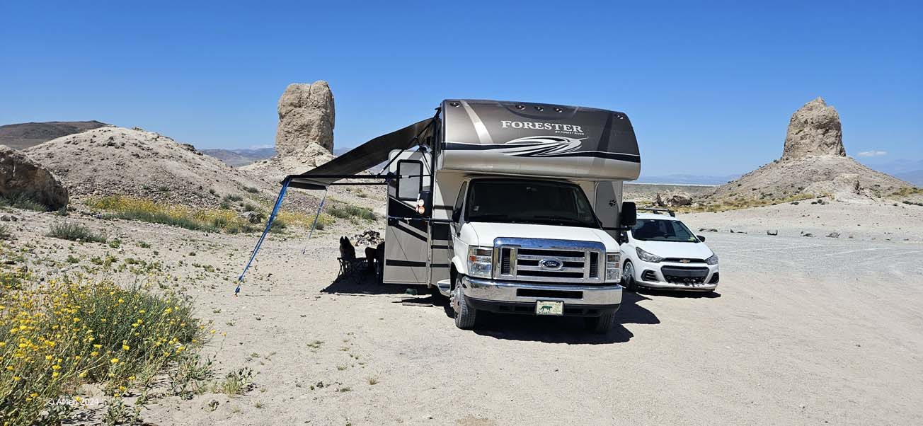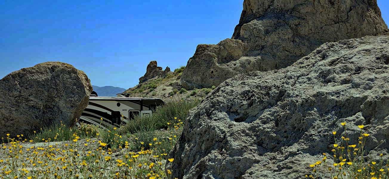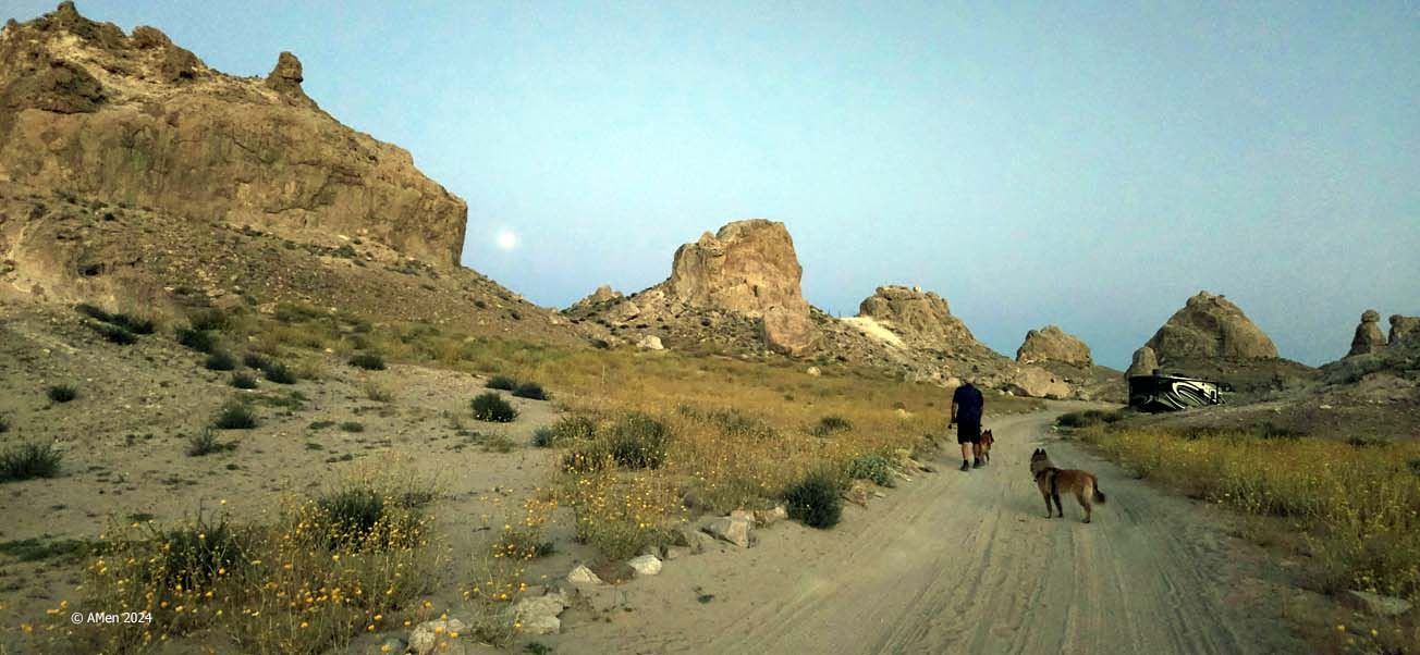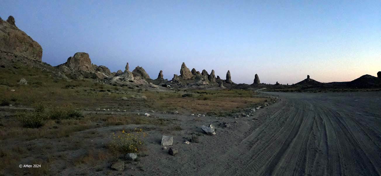 Die 10 Kilometer lange Gravelstrecke zu den Trona Pinnacles zieht sich. Trotz dem derzeitigen guten Zustand war sie lang – sehr lang. Wenn es regnet, ist die Straße unbefahrbar und kann auch mal gesperrt sein – aber wenn man erst mal da ist, ist es ein faszinierender Aufenthalt inmitten einer unwirklichen Umgebung.