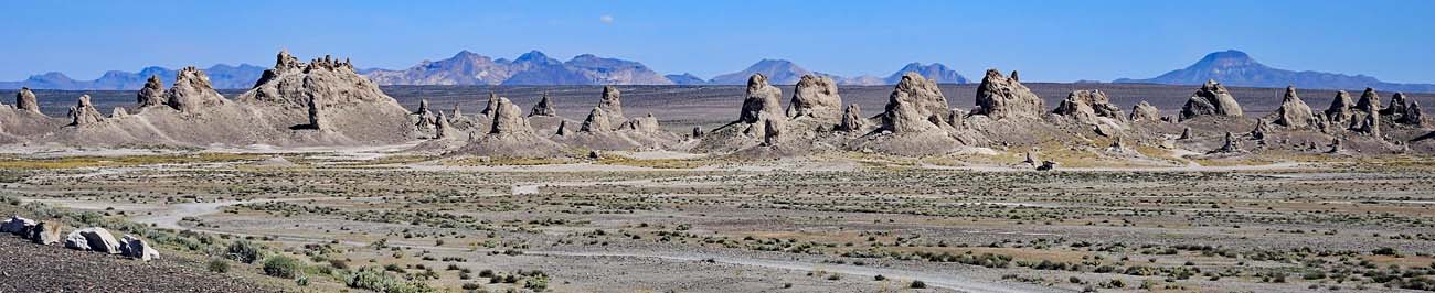 Die Trona Pinnacles befinden sich in einer Höhe von 550 Meter über dem Meeresspiegel. Sie bestehen aus mehr als 500 Tuffspitzen, von denen einige bis zu 140 Fuß (43 Meter) hoch sind und aus dem Bett des ausgetrockneten Sees Searles Lake aufragen.