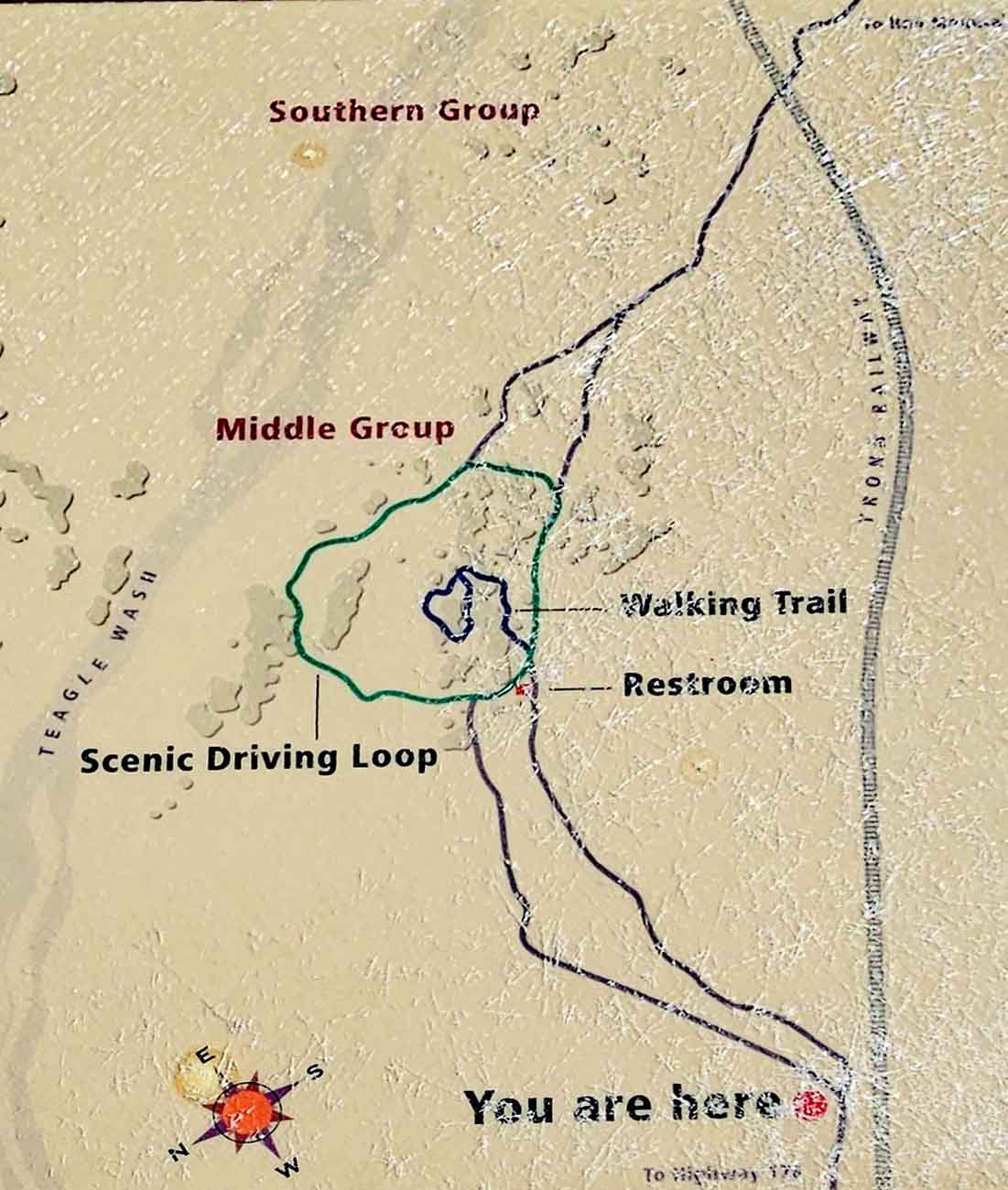 Der Zugang erfolgt über eine BLM-Dirtroad (RM143), die etwa 12 km östlich der Kreuzung von State Highway 178 und der Trona-Red Mountain Road von der State Highway 178 abzweigt.