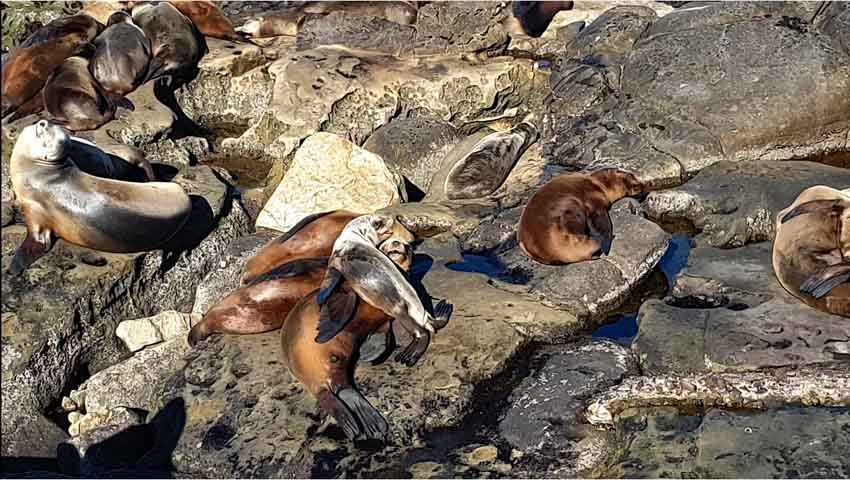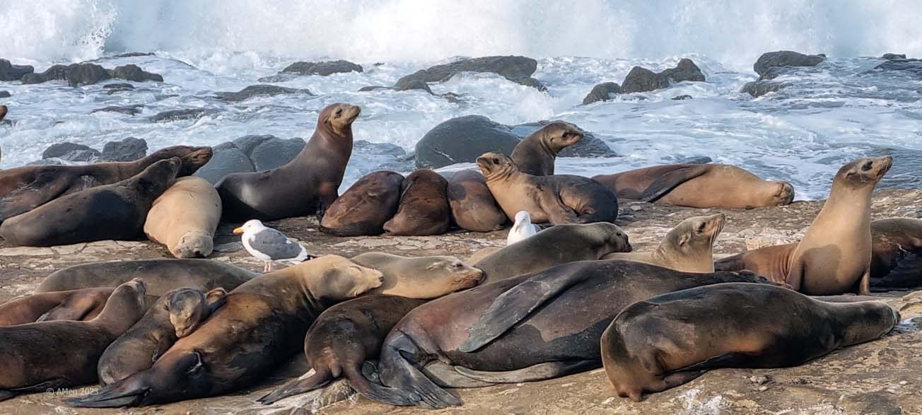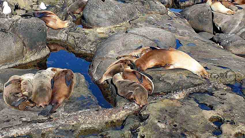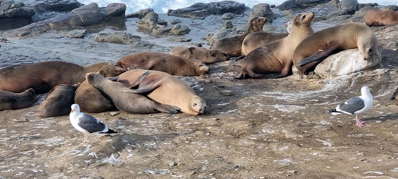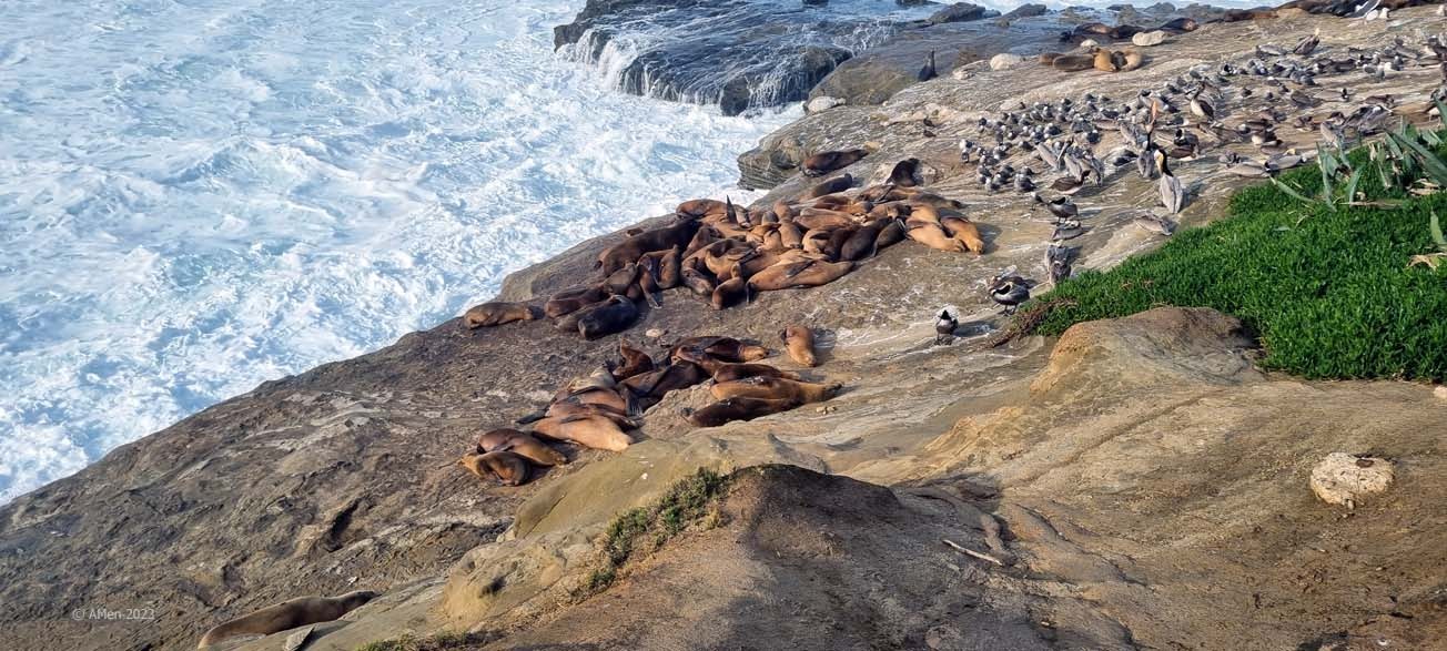 Die Region in La Jolla bietet den Seelöwen und Seeelefanten gute Nahrungsquellen und die ruhigen Gewässer bieten ihnen einen sicheren Ort um ihre Jungen aufzuziehen