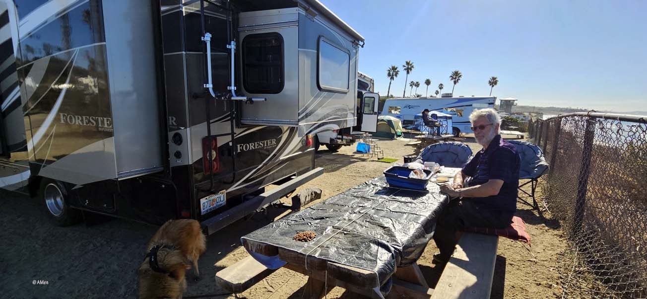 Ansonsten ist es nicht nur durch den South Coast Highway 101 ziemlich laut, vor allem der Zug, der recht häufig hier durchfährt, trötet jedes Mal heftig, vermutlich wegen eines Bahnübergangs, den man auch dauernd bimmeln hört. Zusätzlich lärmt gerade über Tag auch eine Baustelle nebenan – also Ruhe ist anders.