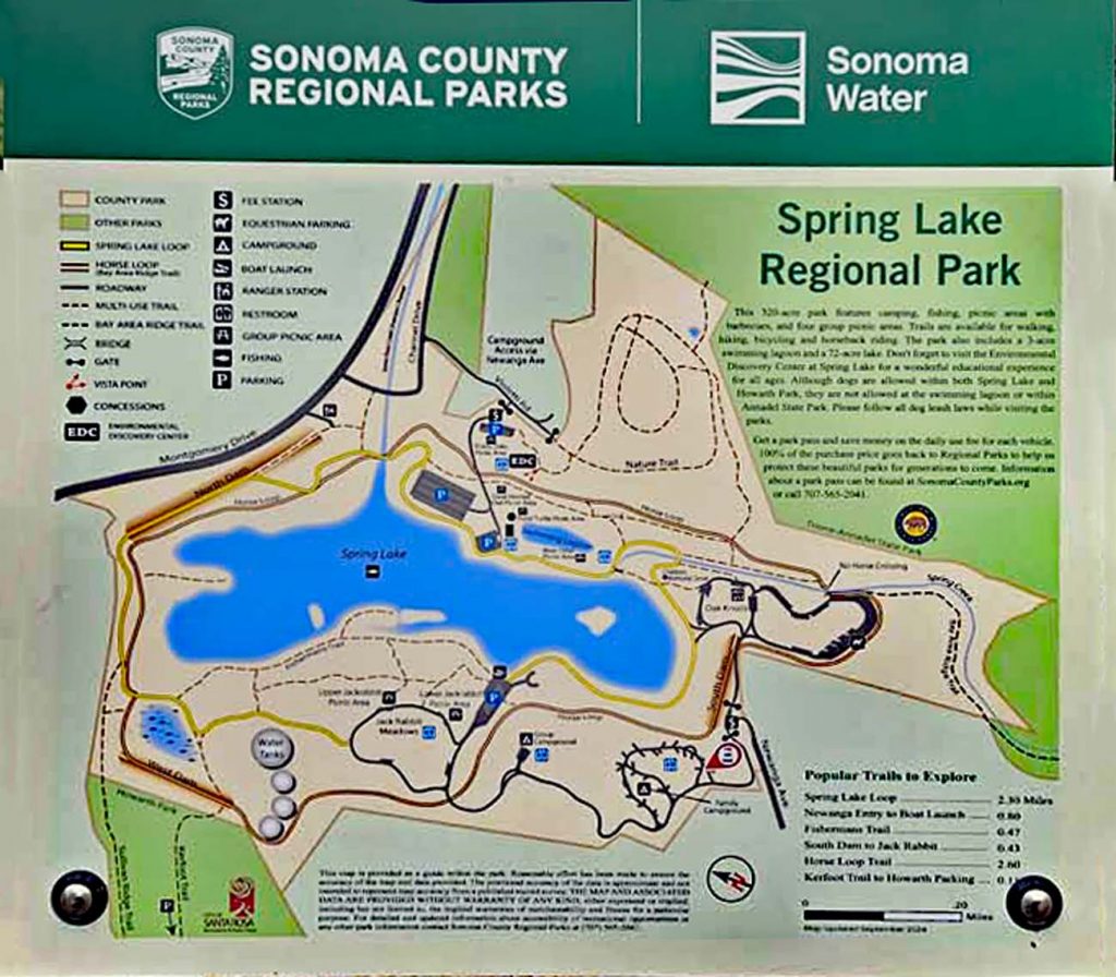 Gerade einmal 23 Kilometer vom letzten Aufenthalt, der Mayo Family Winery in Glen Ellen entfernt liegt der Spring Lake Regional Park in Santa Rosa.