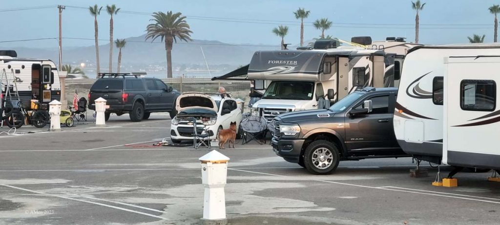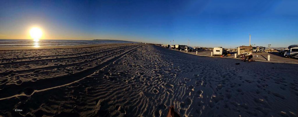 Da es uns im letzten Jahr von San Elijo Statebeach, 40km von Downtown San Diego, zwar nicht zu weit, aber durch den starken Feierabendverkehr auswärts zu mühselig war in die Stadt hineinzufahren, versuchten wir es dieses Mal auf dem Silver Beach Statebeach auf der Coronado Insel. Dieser ist als Platz gar nicht schön, die Wohnmobile stehen auf einem geteerten Parkplatz dicht an dicht und billig ist er auch nicht gerade.