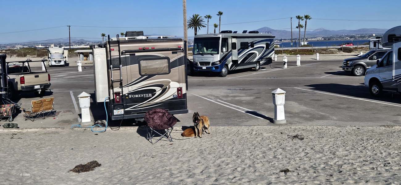 Da es uns im letzten Jahr von San Elijo Statebeach, 40km von Downtown San Diego, zwar nicht zu weit, aber durch den starken Feierabendverkehr auswärts zu mühselig war in die Stadt hineinzufahren, versuchten wir es dieses Mal auf dem Silver Beach Statebeach auf der Coronado Insel. Dieser ist als Platz gar nicht schön, die Wohnmobile stehen auf einem geteerten Parkplatz dicht an dicht und billig ist er auch nicht gerade.