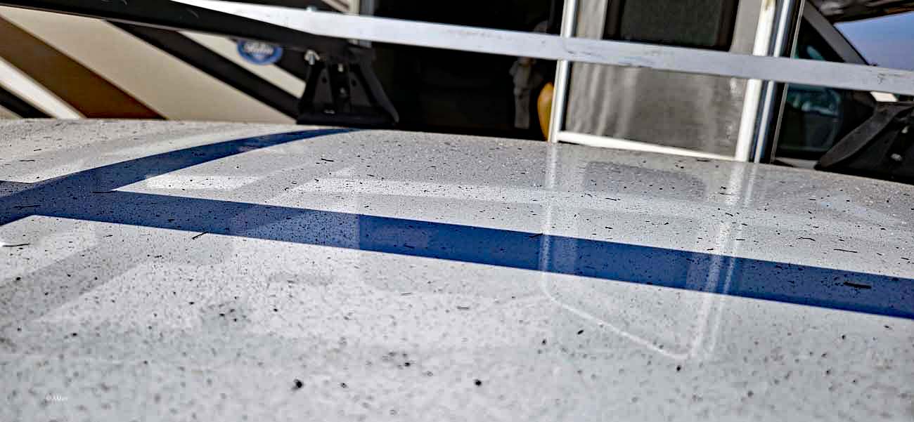 Vom Platz aus sahen wir den Rauch eines weiteren Waldbrands, der sich kurz zuvor entfacht hatte, und der unsere frisch gewaschenes Auto mit Asche überzog.