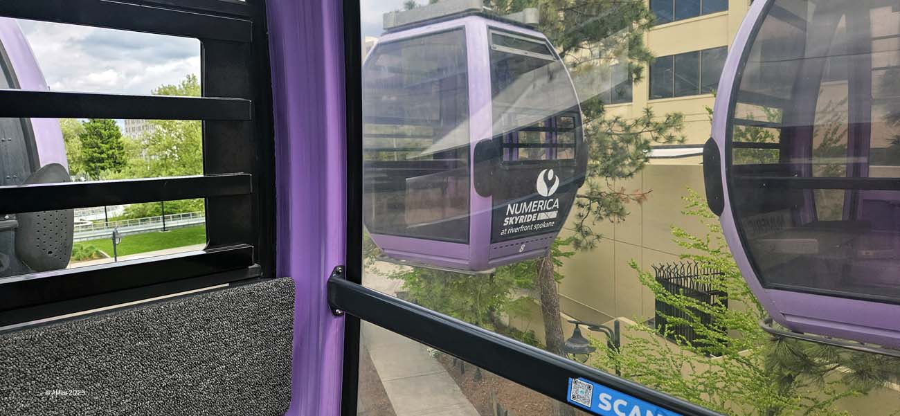 Eine Gondel, die sogenannte Numerica Skyride führt in einer kurzen, aber eindrucksvollen Fahrt direkt über den Spokane River und die Wasserfälle. Die Bahn überwindet dabei eine Höhendifferenz von etwa 32 Metern und es dauert insgesamt rund 15 Minuten für die Hin- und Rückfahrt.