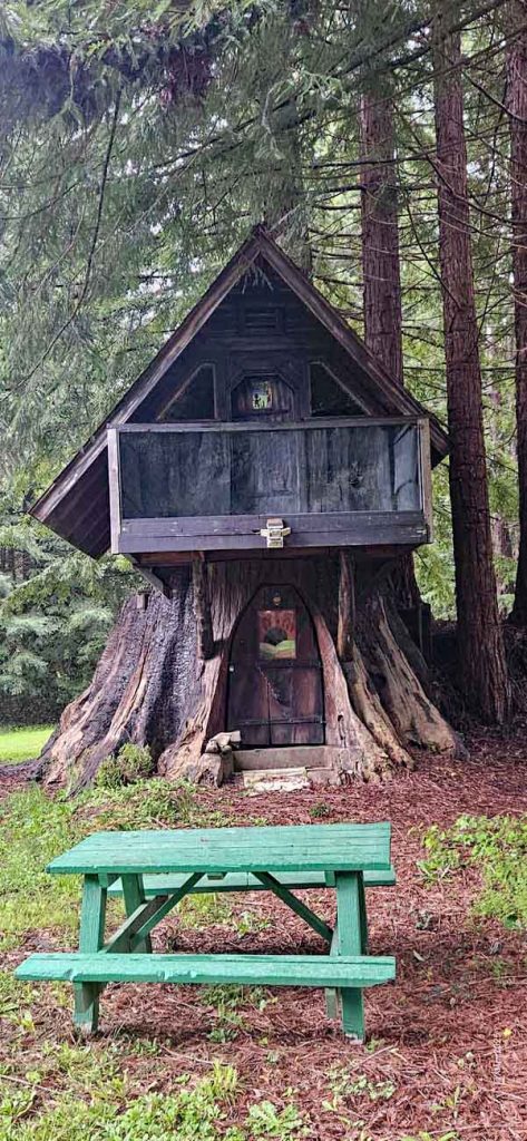 Ein Hingucker ist das Redwood Family Camp, kein klassisches Baumhaus, sondern eine kleine Holzkonstruktion, die in einen der riesigen Redwoods integriert ist.