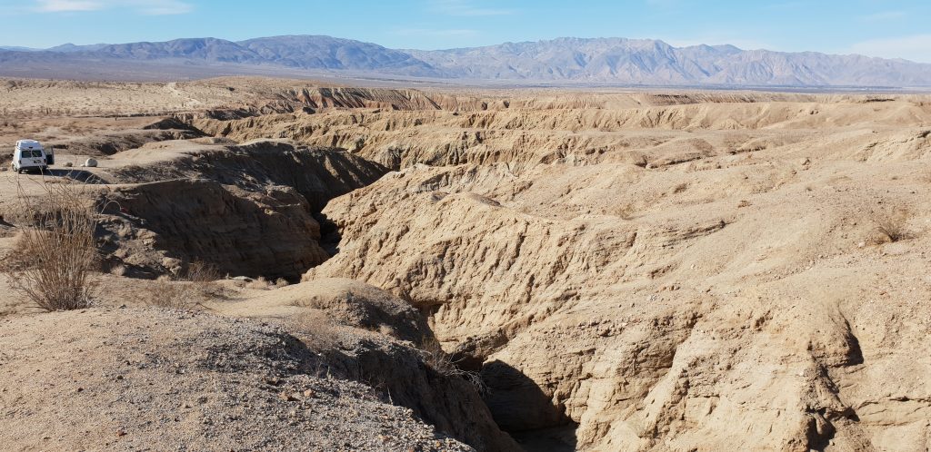 Von Palm Canyon aus fährt man die 78 und biegt dann in eine kleine, leicht zu übersehende Gravelroad, dem Buttes Pass ab. Von da aus sind es etwa noch zwei Meilen.