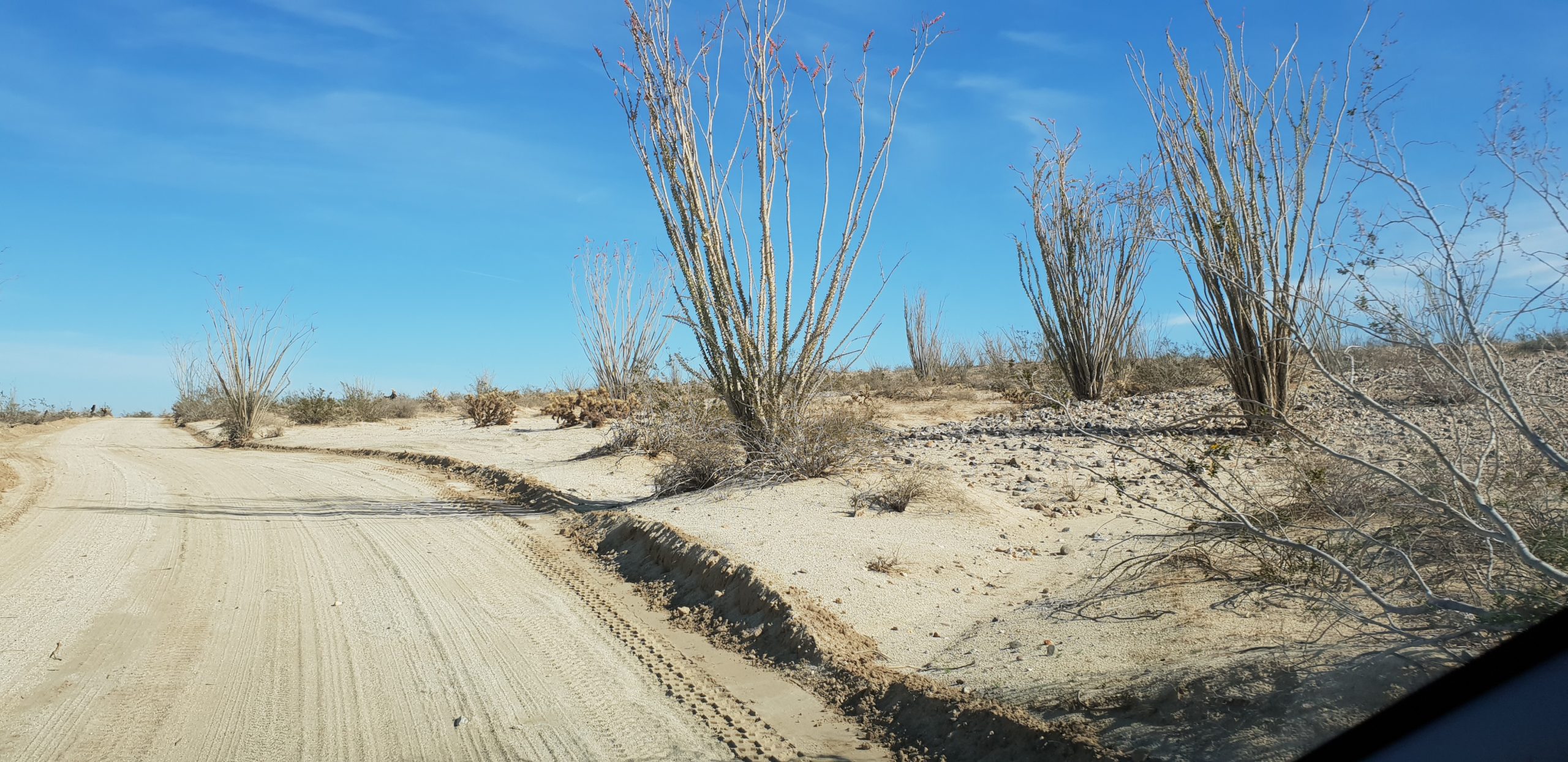 Von Palm Canyon aus fährt man die 78 und biegt dann in eine kleine, leicht zu übersehende Gravelroad, dem Buttes Pass ab. Von da aus sind es etwa noch zwei Meilen.