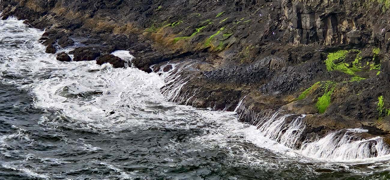 Geologisch** stammt der Monolith aus uralten vulkanischen Aktivitäten, die vor etwa 15 Millionen Jahren Lava aus dem Osten Oregons bis an die Küste trugen.