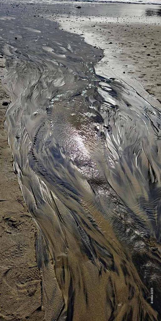 Hinter dem Durchgang öffnet sich ein ruhiger, geschützter Strand mit direktem Blick auf die Three Arch Rocks