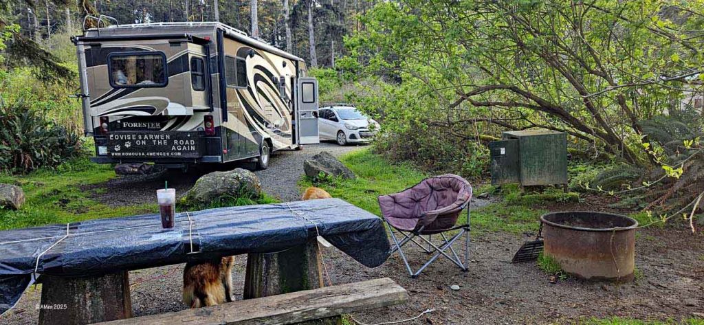 Leider ist der Park, im Gegensatz zu anderen Stateparks, nicht sehr hundefreundlich, sie durften auf keinem Weg mit und auch das Yurokdorf, das als eines der Highlights des Parks gepriesen wurde und das eigentlich nur aus ein paar Hütten bestand, war für Hunde verboten. Schade.