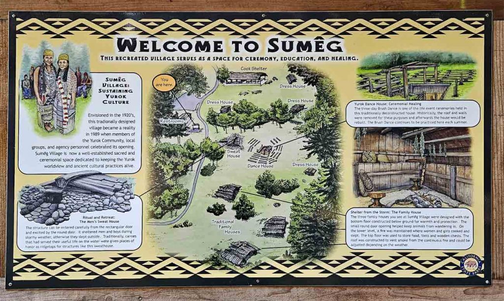 Das Yurok-Dorf ist eine rekonstruierte Anlage, das in den 1990ger Jahren von Yurok‑Handwerkern in Zusammenarbeit mit Parkmitarbeitern errichtet wurden und die traditionelle Bauweisen der Yurok zeigt. Es umfasst Wohnhäuser, eine Schwitzhütte, Umkleidehütten, ein Tanzhaus und ausgehöhlte Kanus aus Redwood.