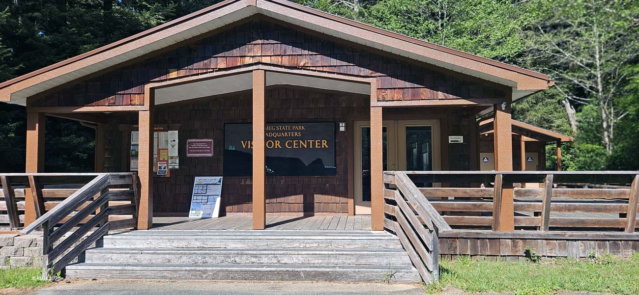 Leider ist der Park, im Gegensatz zu anderen Stateparks, nicht sehr hundefreundlich, sie durften auf keinem Weg mit und auch das Yurokdorf, das als eines der Highlights des Parks gepriesen wurde und das eigentlich nur aus ein paar Hütten bestand, war für Hunde verboten. Schade.