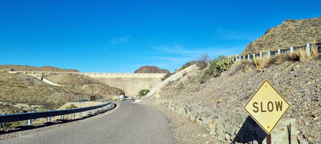 Der Elephant Butte Dam staut den Rio Grande – der Bau des Damms begann im Jahr 1911 und wurde 1916 abgeschlossen. Er ist nach dem nahegelegenen Elephant Butte benannt, einem Vulkankegel, der einem seitlich liegenden Elefanten ähnelt.