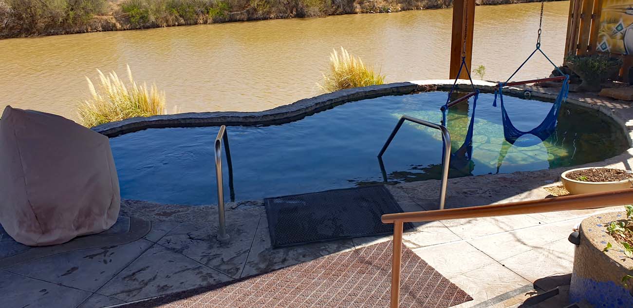 Wir wählten das River Bend Hot Springs, da es die einzige Quelle in der Stadt ist, die Pools mit Blick auf den Rio Grande anbietet.