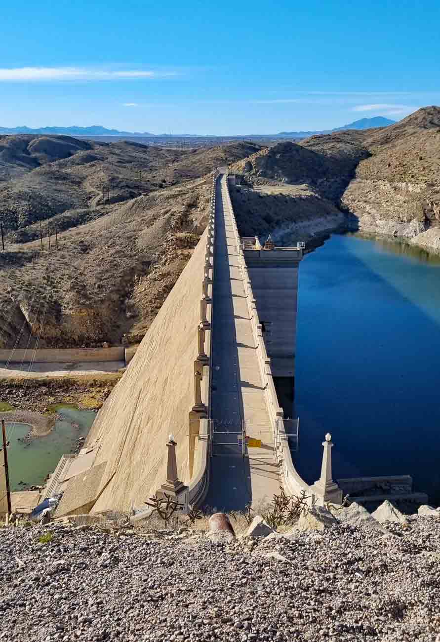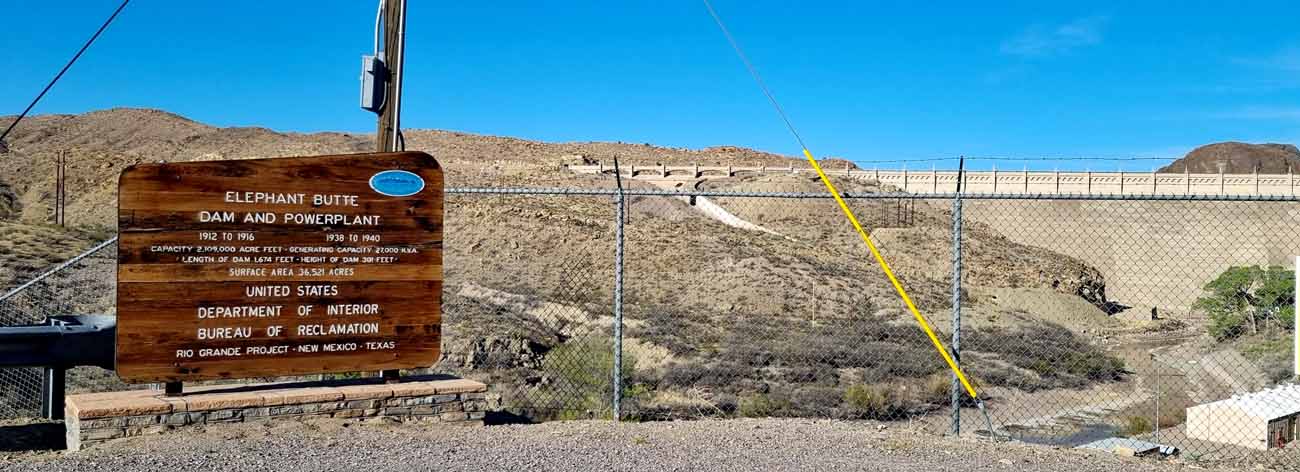 Der Elephant Butte Dam staut den Rio Grande – der Bau des Damms begann im Jahr 1911 und wurde 1916 abgeschlossen. Er ist nach dem nahegelegenen Elephant Butte benannt, einem Vulkankegel, der einem seitlich liegenden Elefanten ähnelt.