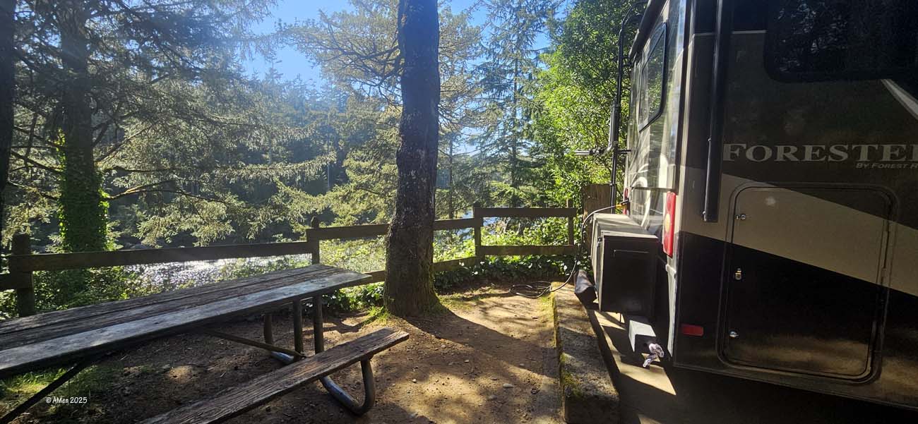 Der Umpqua Statepark ist einer der schönsten, auf denen wir bisher waren, wobei wir mit #43 auch einen der schönsten Plätze erwischt hatten, wie man uns beim Checkin bestätigte.